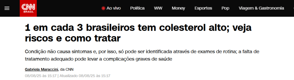 O colesterol é essencial pra manter o corpo em equilíbrio, ele participa da produção de hormônios e da regeneração celular. Mas quando ele sobe demais, o corpo não dá conta de limpar o excesso, e esse acúmulo vira um perigo silencioso, as artérias se fecham, o sangue não flui, e o coração sofre em silêncio.